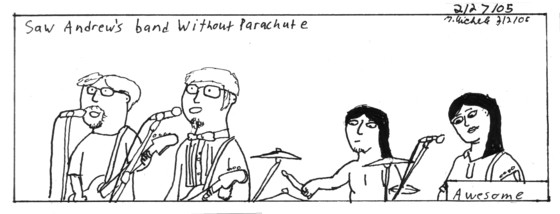 It's been awhile since I've seen then and I forogt how good they do. Of course Andrew made a specticale of himself. The highlight was that he dry fucked the drummer from Drive-thru Pharamcy. The other bands where okay. The most interesting one was Drive-Thru Pharamcy. They couldn't fit all their members on the stage. The poor keyboardist crouched in the corner. They were suprising good for how many people they had.