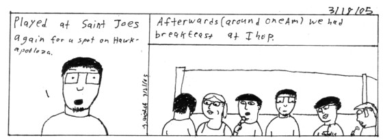 We played an awesome set. Tiff and Andrew were there to watch and they kept annoying me to take them to IHOP. But it was cool. Oddly enough the waiter made us pay for our food before we got it.