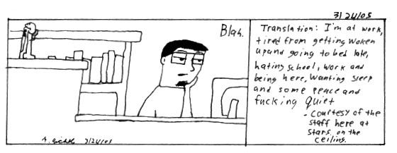 It's just been a crappy week, I tried to lighten up the downer feel of the comic by adding the staff part. Because everybody knows it's just me doing this strip.