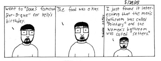 Today we celebrated my sister's birthday. It's not till the 31st but we decided to do it today. She turn 24. Also we went to my brother's house to cleberate three birthday's at once. My brother Ricky aka Big Guy, Joey and Frankie. So it was a very big birthday. I'm also thinking of joining the vast majority of webcomic artist and adding weird titles to accompanying my strip. *shrug* With that I'd have to do all of my strips. So, I might not. Anyway that's all, take ere easy.