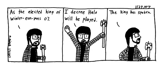 Winter-een-mas was a blast. Thanks to Dave for hosting and everything else. Halo was played and enjoyed. I was elected king by a freak coincidence. So till next year, I shall be king. haha.