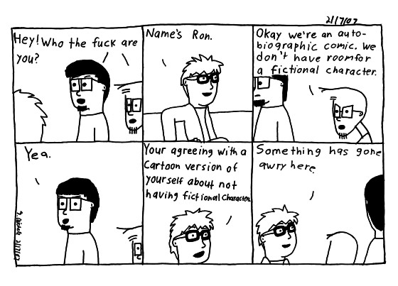 Mystery solved haha. Ron is a guy I drew based on some weird hair I drew on me a while back. I don't really know what to do with him so I figured STORY ARCH TIME!! I mean, my weekends are kinda dull anyway.