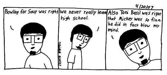 "And you still don’t have the right look. And you don’t have the right friends. Nothing changes but the faces, the names, and the trends. High school never ends."