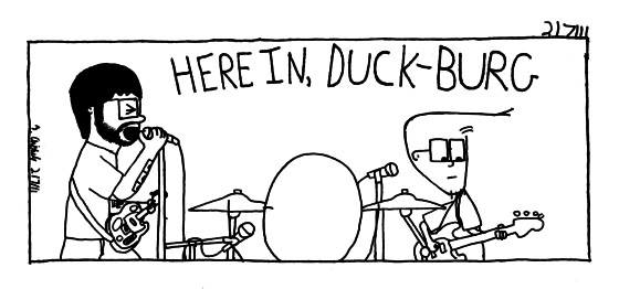 "Life is like a hurricane. Here in Duckburg. Race cars, lasers, aeroplanes. It's a duck blur. You might solve a mystery. Or rewrite history."