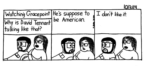 It was weird not hearing his Doctor Who or natural Scottish voice(which Abigail likes best). But it's an interesting show.