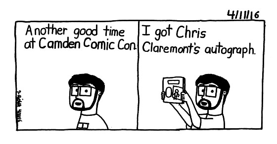Camden Comic Con wasn't a booming success but better then last week. And for those of you who do not know who Chris Claremont is, he wrote the comic Days of the Future Past and creator such characters as Sabretooth and Rogue