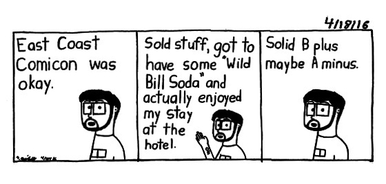 Oh Wild Bill Soda, too much of a good thing is bad haha. And sucks they didn't have black cherry. As for East Coast Comicon, the problem once again was lack of people coming through. Nothing they could do about it, just sucks. I thank those who did stop at my booth. You're all awesome!