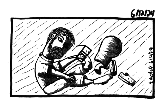 "We drive. Dave steps on the gas. The world that's flying by is. Slick and smooth. Big waves of light. The radio is playing Queen. We're rocking out."