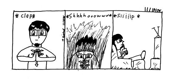 Nothing exciting. Just watched Full Metal Alchemist with Mom. I'm almost done watching it, unfortunately the movie will take forever to get. But it looks interesting, THEY HAVE MEXICANS!! Well at least ladies who look mexican and dance the salsa. Back to doing nothing. "Looking for a fast time. Watching out for bright lights. Send me off to private school. When I'm with you it's paradise."