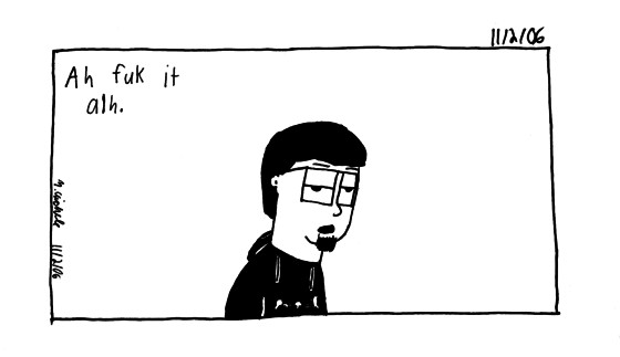 So tomorrow me and the Rutgers crew will take New York. Then the world!! So I'll update really early. There was watching of Snatch in the lab. So that is why it's today's comic. See you tomorrow. "She's a dove, She's a fuckin' nightmare. Unpredictable, it was my mistake to stay here. On the go and it's way too late to play. I need a girl that I can train."