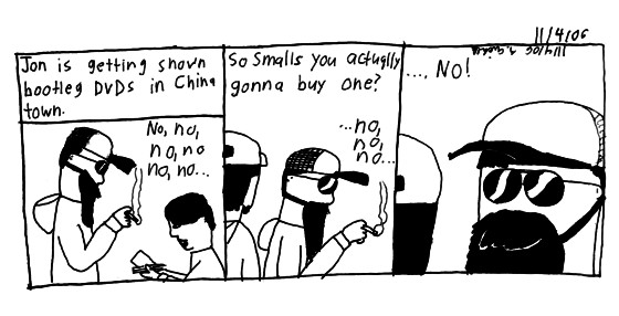 Had much fun with Jess, Jon, Jose, and Andy. Love to you all. New York was fun. Hung out, went to the MoMa, hung around Times Square and watch a 6 foot tall white guy walk around china town with a fake beard and sunglasses(thanks for that smalls). Good times, thanks to all. "Man, I think I'm gonna buy myself a Rolls. Maybe a Chevrolet. One where I can pull that top down. Just let my radio play."