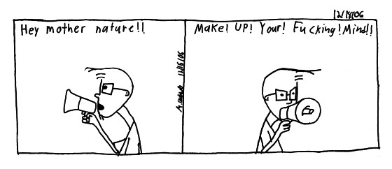 But yea, I kinda want the weather to be stable. So when I dress warm I don't get fucking hot. GOD!!