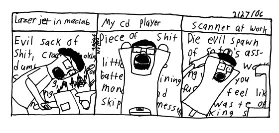 Yea this day was anti-technology. I couldn't print, my stupid cd player lost the left channel, and the scanner was annoying. That's why all three can go to hell.