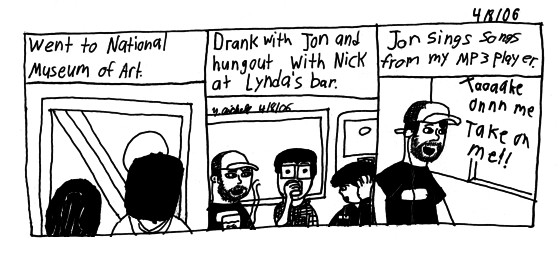 This is my 452th comic strip. WOOOOO. Haha I really don't keep track of these things. I also like how I drew it. I was originally just going to do the one panel with Jon but I figured let's not be lazy and do a three panel highlight reel of my day.