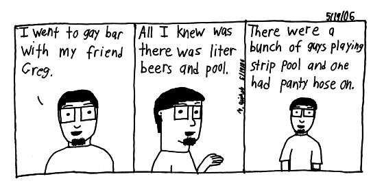 Yea it was called Biker bar or something. I didn't notice what it was till I started to see the posters hanging around. Yea, Greg failed to mention it was a leather bar, but he knew I wouldn't care. In anycase it was very fun. I also got hit on by the host Stacy. It flattered me cause I got hit on. Just sucks it wasn't a hot chick, but hey can't win them all.
