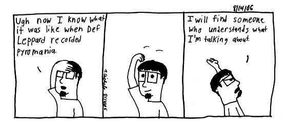 Today's comic is in reference to my recording session yesterday. Chris is very professional in the sense he wants quality, not quantity and efficiency. He extremely picky and demanding, but eh I can take it I've had experience with such things (I imagine a few people are gonna wanna asks specifics but, not gonna do it). It's just very different with the go in for one day, argue, get five songs done, and just try to do the best we could. Now since we don't have to pay we're taking our time and making something relatively good.