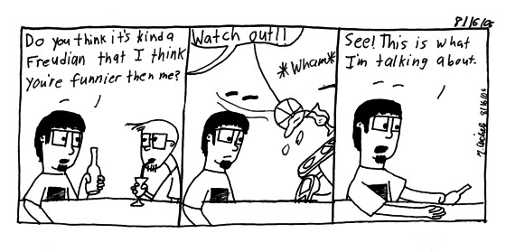 Ummmm, yea. I guess I find the cartoony version of me funnier cause he has no rules. THe classical(black haired) version of me is closer tied to my reality then the cartoony version. Cause the classic echos things happened outside my head(though technically classical says what I think) while the cartoony does the funny things I think about.