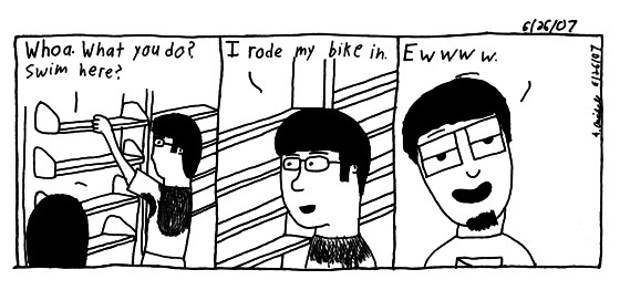 That's Andrew, he works at the library, obviously. For some reason he decided to bike on this hot fucking day. When he actually has a car. *shrug*. Later folks.