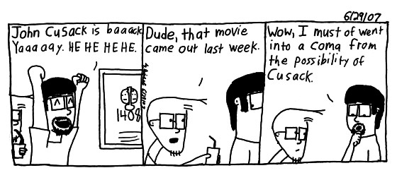 Yea, 1408 came out last week. Ironically I coulda done a comic about the movie coming out cause I didn't write anything haha. I just forgot it came out. Though I couldn't beat Joe from Joe Loves Crappy Movies.