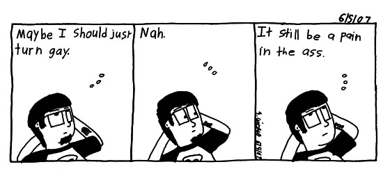 Originally the last panel was going to read "It be a pain in the ass" but when it came time to ink I added "still" and viola. A dimension I didn't even think off.