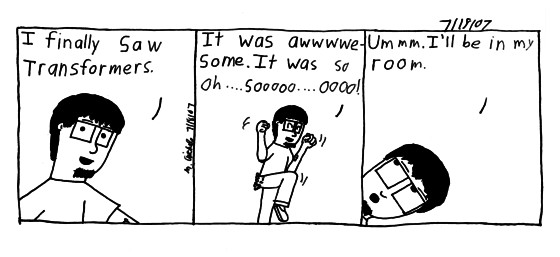 But it was for the best cause, TRANSFORMERS!!! It was awesome. Kinda lame in a few parts but the transforming and few fight scenes are worth it.