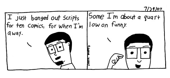 But don't worry about comic posting while I'm in San Diego. I have a few friends who are bringing laptops and we have free internet in the room. So I figure they'll let me borrow it for a couple minutes to update.