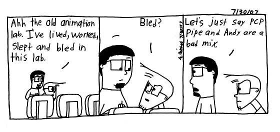I have to admit I never really bled in the lab. Metaphorically yes, but not literally. Also I'm alluding to Andy's prowess with using pcp pipe as a blowgun. Thankfully he never hit me.