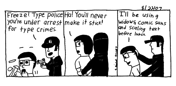 As for the comic sans thing, it's not necessarily a crime, but most designers hate that font. I don't know why. I kinda dig it.