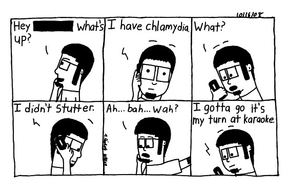 "Well, I never had VD on my PP. Hope your pissed 'cause I'm really drippy - Yes I do. Pulled out my burning pecker and out came the puss. Though it hurt, but I was devoured by lust - Oh, what a fuck."
