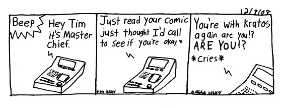 Just to be clear, I don't fantasize about master chief stalking me. I just find it hilarious for a strong bad ass character acting like a needy whiny guy haha. And after looking into my old comics, this isn't the first time I avoided his calls.