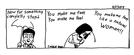 Though I said I don't wanna do just funny comics too often. I'm just returning to the old tradition of doing weird or funny comics when I got nothing else to say.