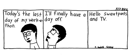 Yea, my last day off was Thursday. And I don't have to go back till Saturday. Later folks.