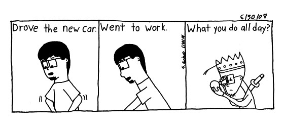 Yup. Got to drive the new car. It's handels well I guess. MP3 JACK BITCH!!! hehe.