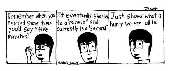 Think about it. I personally believe we should return to saying five minutes. Cause it gives you time(lets be honest it always takes longer then a minute or second anyway) to get whatever done and if you get done early you are awarded for being speedy. Win win man.