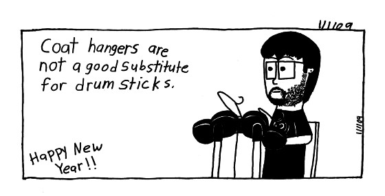 Yup Jay forgot the drumsticks, and (completely sober) thought coat hangers was a good substitute.