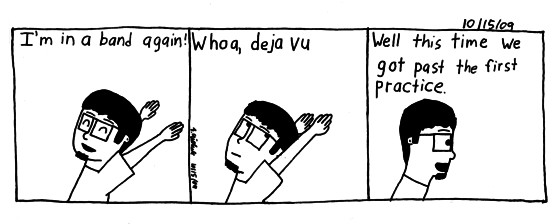 Of course I refer to this comic and the possibility of a cover band. It's kinda funny that I got more jokes out of the band then practices. Though looking back I never talked about the band after the two comics but it didn't go after the first practice.