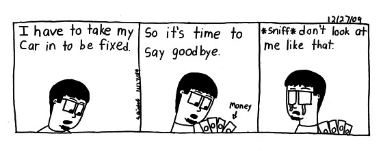 Yea a piece on the exhaust pipe is missing. I don't know where it went, so now I must take it to be fixed. BAH! Hopefully it won't break me.