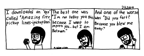 As always, I'm not making this up, it is a real app and it's not the only one, there are ones you have to pay for too haha. In one sitting I read all the lines that it offered, most were pretty weak.