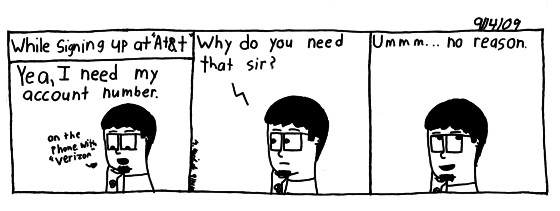 Sadly this didn't happen the way it is portrayed here. My Mom was actually on the phone, but the guy on the phone did ask why we needed the account. I needed to give em my account to keep my number.