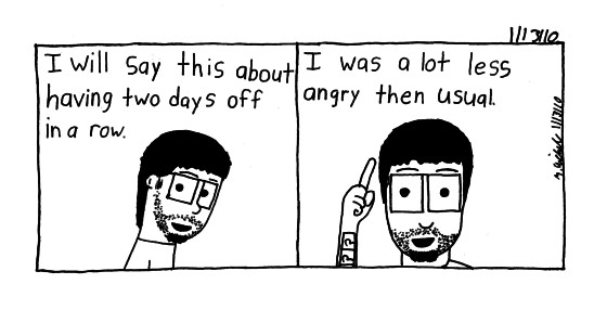 I really was. Though this may not be permanent, we'll just have to wait and see on Saturday. "Gimmie back my alcohol." (Scoff, Nirvana)