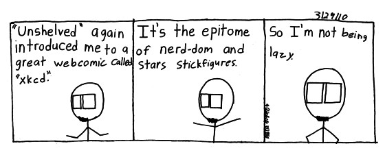 Yup Unshelved introduced me to xkcd, it's awesome and deals with math, charts, and nerd culture. One comic that stands out in my mind is this one.