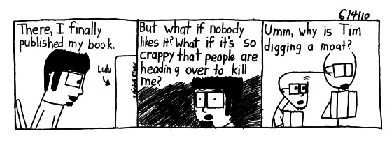 Contrary to the comic I am excited, after five years it's finally here. Stars on the ceiling in physical form. Thanks to the folks over at lulu you can now have 130+ of my favorite comics over the past five years. So head over here to purchase your copy. THANKS GUYS!!!