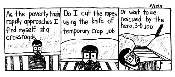 I'm amazed how quickly I came up with this extremely accurate metaphor about my current employment situation. The knife representing a temp job works cause I may get out the way a while before the train rounds the corner, but I may accidentally cut myself and possibly limit my future options, okay I made that up as I was writing the news post. Now waiting for the hero, may lead to a close call or getting run over.