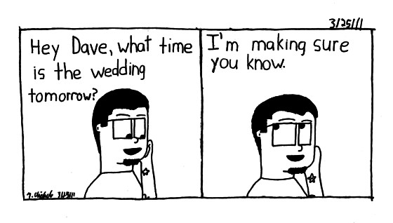 Also this comic is more fictional for two reasons: one, I texted Dave, two I didn't try to play it off. However we both agreed it be funny if I tried.