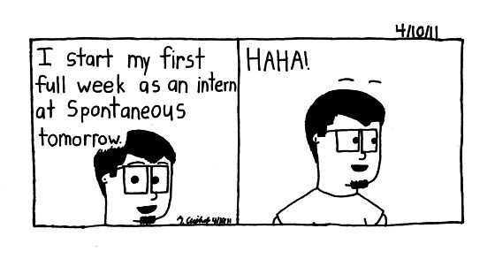 That's right, I'm officially telling all of you, my loyal readers, that I am working at a production Studio called Spontaneous. WOOOO!