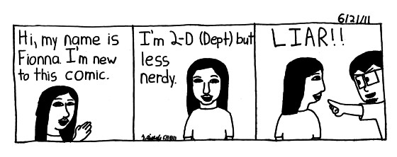 This is Fionna, she works in the Design(2-D) department. I added the calling her a liar bit. Cause she's as nerdy as the rest of us haha.