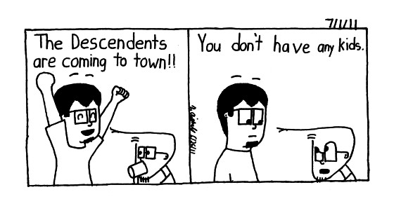 Very excited, the Riot Feast(the show) has a who's who of reunited bands, Hot Water Music, The Descendents, Dead Milkmen, Suicide Machines. I hope I get to go. "If you can cheer me up. I could learn to love you." (Cheer, Descendents)