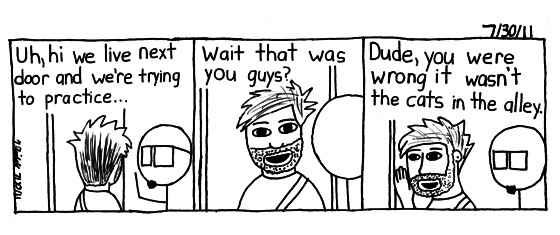 Truthfully in reality there are very noisy cats in the alley behind the house.