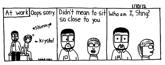 Krystal is one of the security people at the store. I actually said “Who am I the police?” figured people would get it more if I said Sting, even though The Police did the song first.