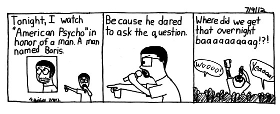 Movie Monday at The Troc is playing American Psycho tonight, and it reminds me of my friend Boris, you may remember him asking the question a while back so I raise my cup tonight to Boris.
